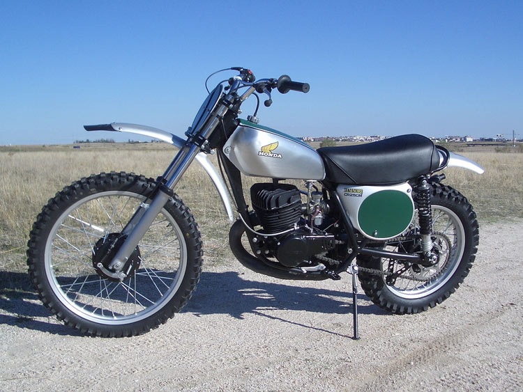 This is my 1973 Honda CR250M Elsinore. I live in Madrid, Spain. We dont have Elsinores here, so I have found this bike on an eBay auction, in Salt Lake City, UT. I won the auction and the seller shipped the bike to Miami, FL where my dad, who had to travel there, stripped it down, put all the parts in suitcases and brought it in his lugage on his flight to Spain.