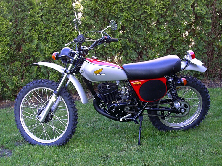 It has an MT gas tank that holds a bit more gas than a CR tank. The bike has an MR175 engine and a CR125 carb. I added an FMF silencer to the CR pipe to quiet it down a little. The knobby tires are DOT approved for street use. I used a small bicycle speedometer/odometer. It took 3 months to get it approved by the licencing agency and needed 2 safety inspections.