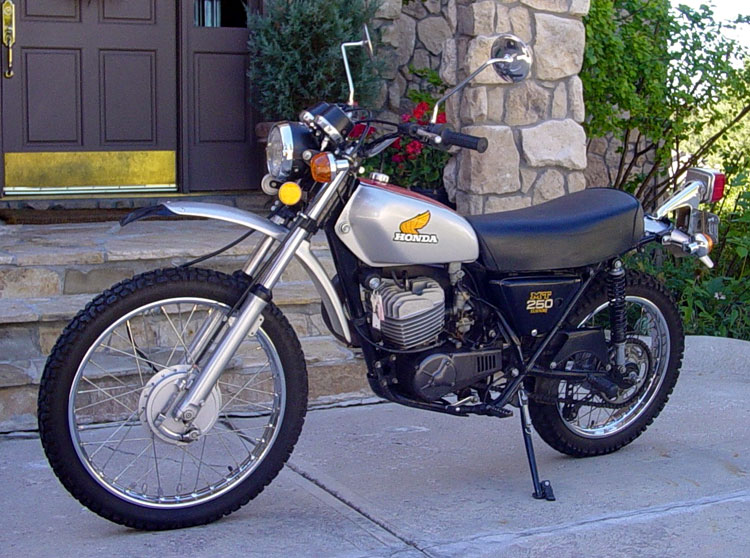 This is my 1975 MT250 Elsinore. The bike has only 4,900 miles on it but that's because I just purchased it (I plan to ride it a lot). I am the fourth owner of the bike but as you can see, those that owned it before me were really good to the bike. The bike is in near-mint condition, and as far as I can tell, is complete and "as new", except for aftermarket rear rider pegs.