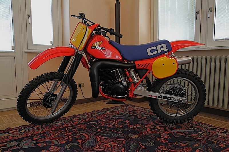 The rear rim was changed with an original one from 1983 and the wheels were restored by Pulimetal in Caronno Varesino. By the way I did not like the rear swing arm and replaced it with an almost new one that I bought in the US. The front brake cable was also a hard nut, because it is specific for the CR 25 /480 from 1983. I even found the rubber caps for the front fork...